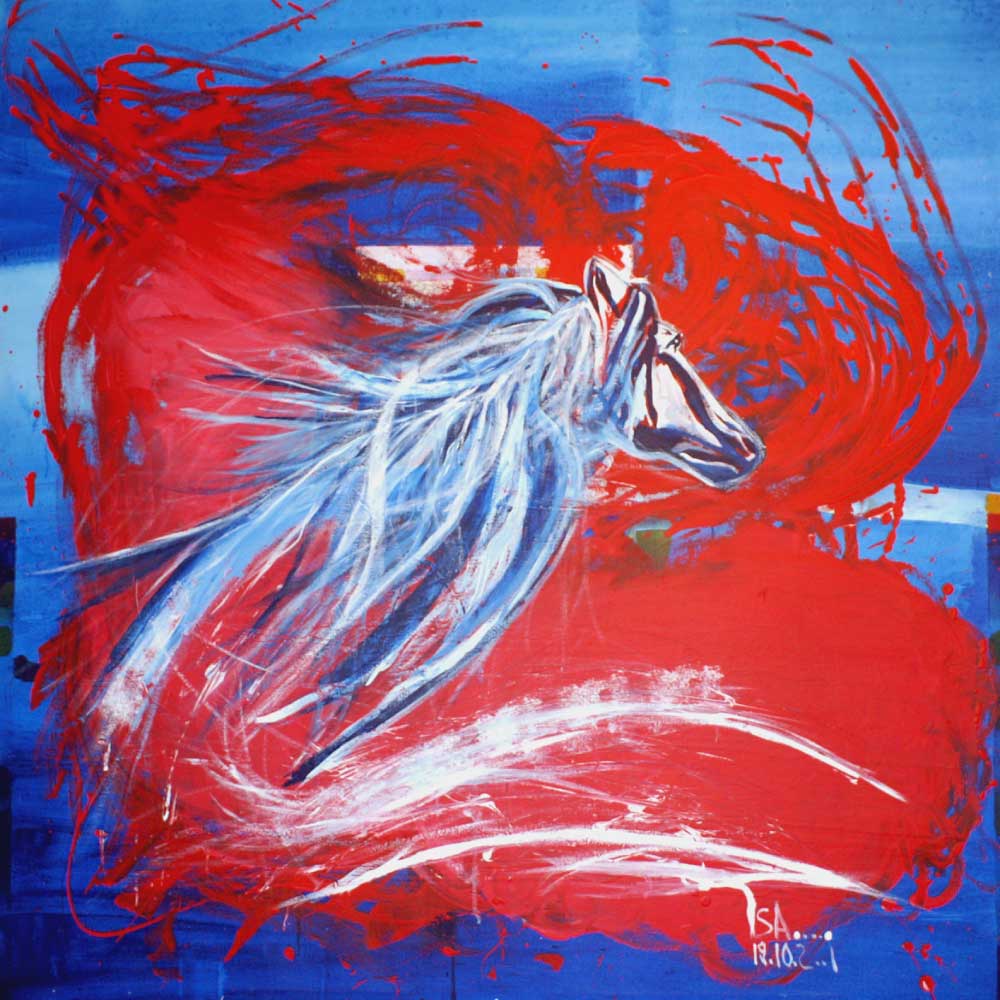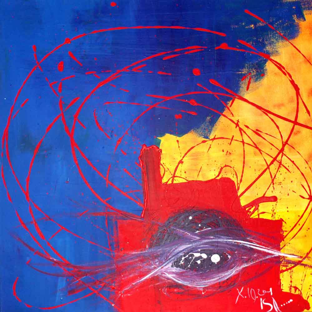 Meist habe ich zu Beginn noch keine Ahnung, was genau auf der weissen Leinwand entstehen soll. Nach Lust und Laune wähle ich dann Farben und lasse ein Bild entstehen. Mein Kopf schaltet komplett ab und ich gebe mich gefühlvoll dem Fluss der Farben hin. So entsteht am Schluss ein Bild, das Geschichten erzählt.