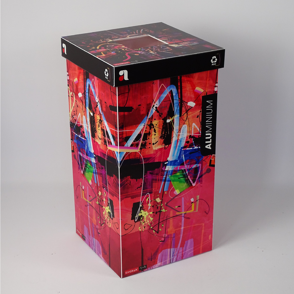 Ein praktischer wie auch schöner PET-Sammelbehälter für dein Zuhause oder den Betrieb. Dieses wunderbare Design wurde mit der Kooperation des spanischen Künstler Guillermo Arismendi geschaffen und soll dir Freude am recyceln bereiten.